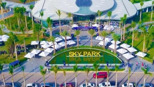 Không chỉ đáp ứng nhu cầu che nắng mà dù lệch tâm vuông còn tạo điểm nhấn nổi bật giúp khu đô thị cao cấp Gem Sky World tại Long Thành (Đồng Nai) thêm phần sang trọng.
