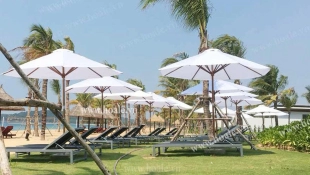 Để đáp ứng tiêu chuẩn chất lượng phù hợp với vị trí lắp đặt sát biển và tính thẫm mỹ cao tại khu nghĩ dưỡng 5 sao thì việc lựa chọn một chiếc dù che nắng cực kỳ quan trọng.