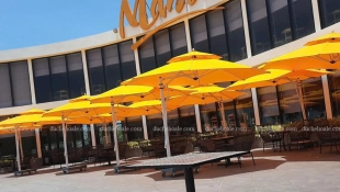 Vị trí lắp đặt vùng gần biển nơi có nhiều gió đòi hỏi mẫu dù che nắng phải cứng cáp thì mẫu dù lệch tâm tròn là lựa chọn số 1: