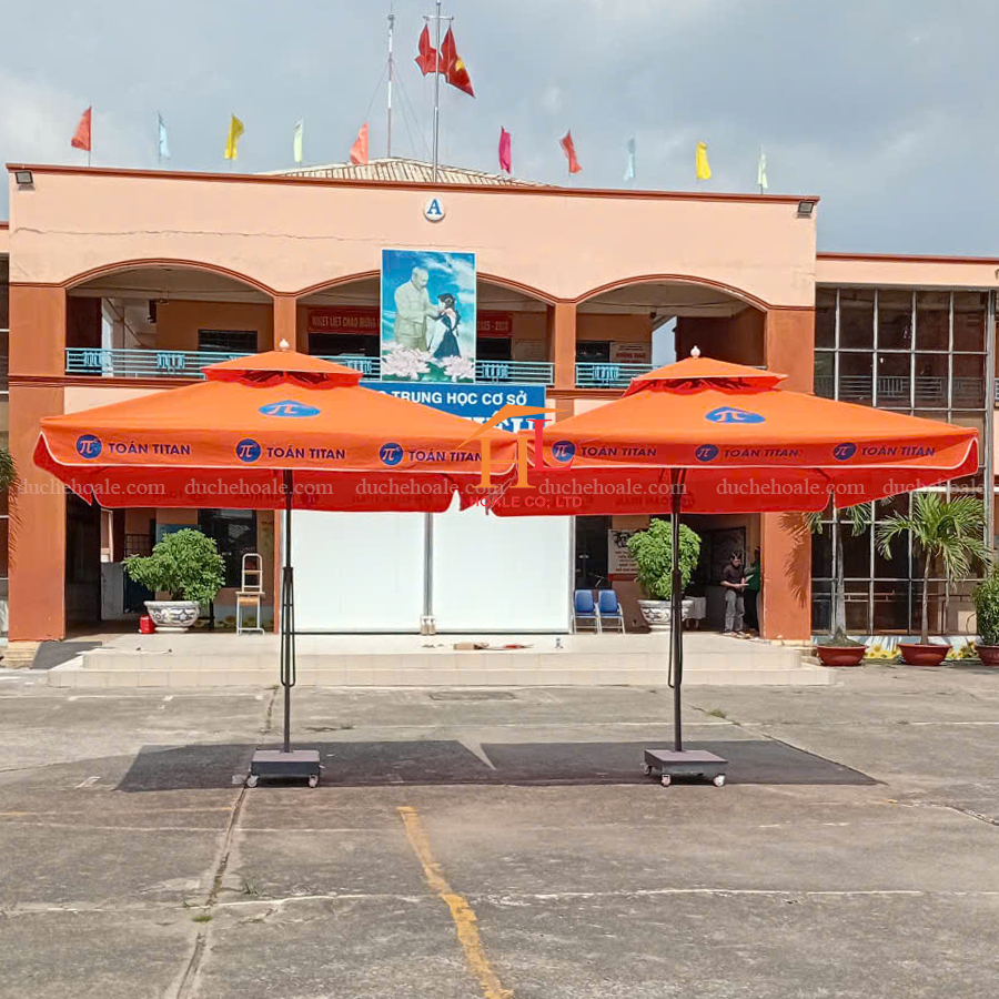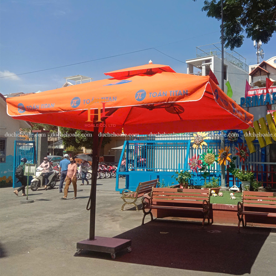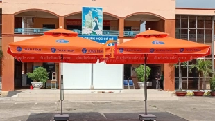 Không chỉ là vật dụng che nắng, dù lệch tâm vuông CB còn góp phần tạo điểm nhấn thẩm mỹ cho sân trường. Với gam màu cam tươi sáng, kiểu dáng sang trọng tất cả đều phù hợp với không gian năng động, trẻ trung của môi trường học đường.