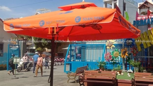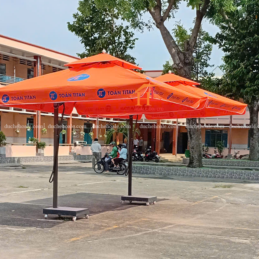 Khi nhận được yêu cầu, Hoa Lê sẽ tư vấn kiểu dáng, kích thước và màu sắc mẫu dù lệch tâm phù hợp với tổng thể sân trường.