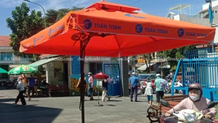 In ấn logo thương hiệu ToánTitan trên toàn bộ cánh dù.