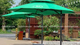 Mẫu dù che nắng lệch tâm tròn 4m khung sườn đảm bảo độ cứng cáp để lắp đặt những nơi có gió mạnh. Thiết kế dù che 02 tầng tăng tính thẫm mỹ và thông gió tốt nhất.